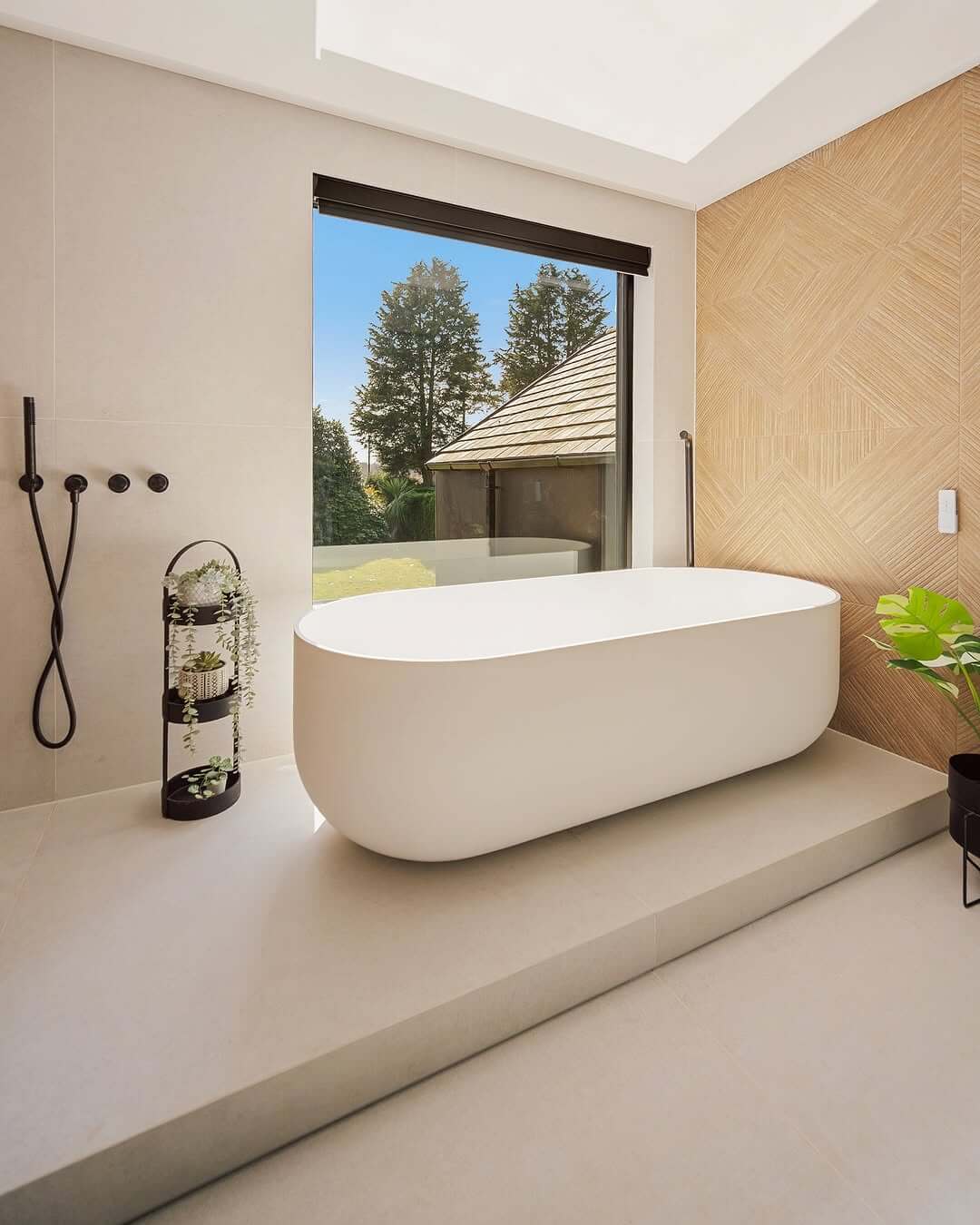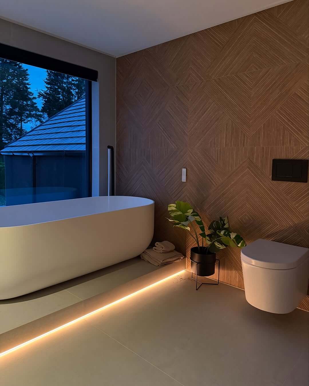 Even if you don’t have room for a tub, you can capture the same vibe with small touches like eucalyptus bundles hanging in the shower or a dimmable LED strip around your mirror.