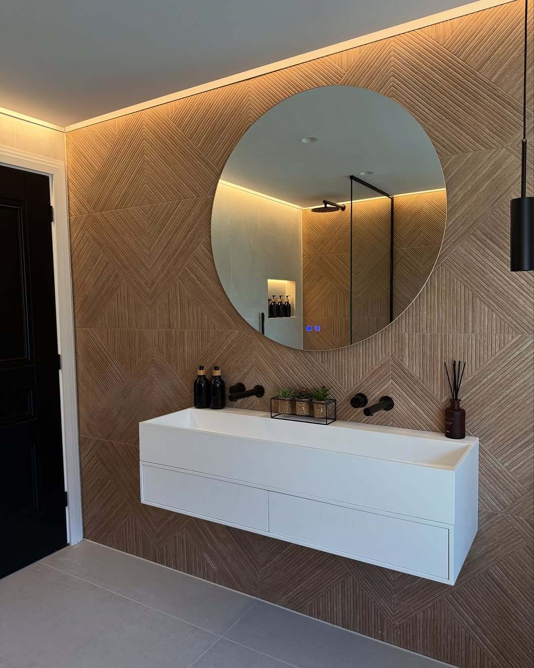 Suspended vanities and wall-mounted toilets are more than a style move, they’re practical. Lifting them off the floor saves visual space and makes cleaning easier.