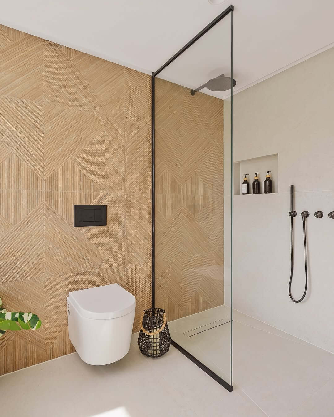 👉 Small-Space Twist: Use a half-glass partition to mimic the wet room look without the full remodel.
