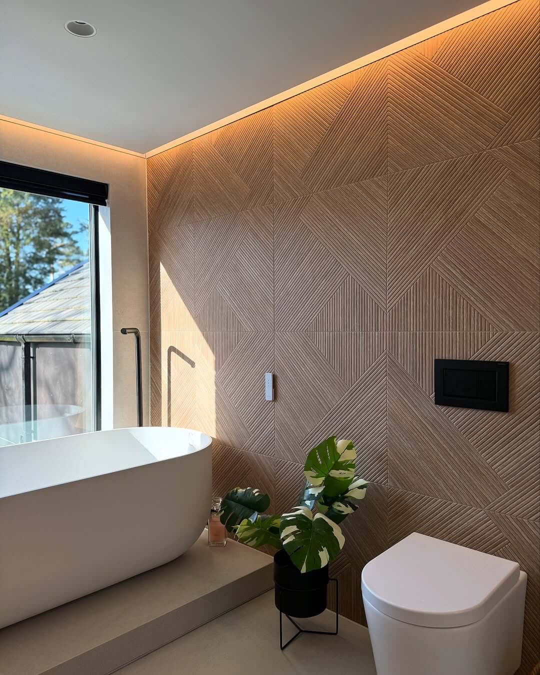 While warmer and earthier palettes remain popular, dark bathrooms are having a moment. Deep navy, charcoal, and even matte black tiles create intimate, cocoon-like spaces that feel luxurious.