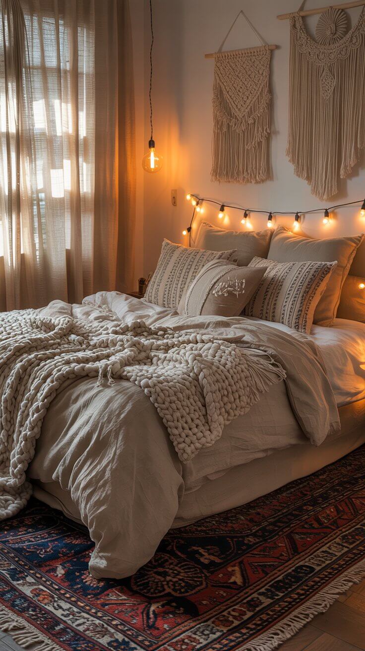 When I finally stopped smoothing my linen duvet every morning, I realized my room felt warmer—not messy, just relaxed. Guests always commented that it looked cozy and real. That’s the point: boho bedrooms should look lived in, not staged.