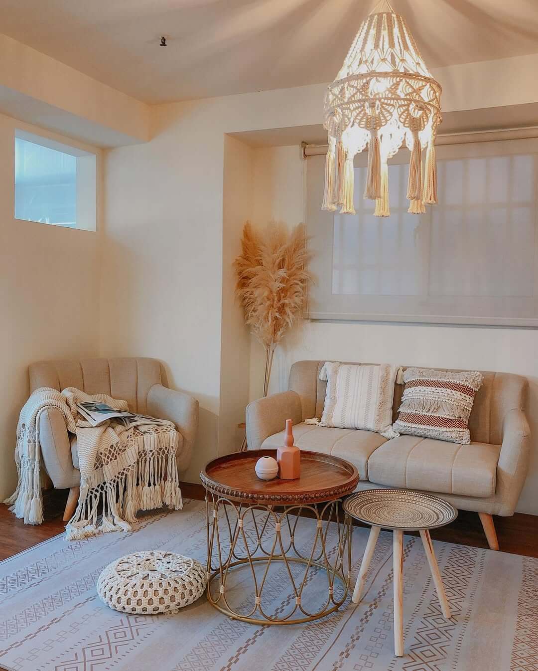 A good boho living room doesn’t feel crowded. It feels collected over time.