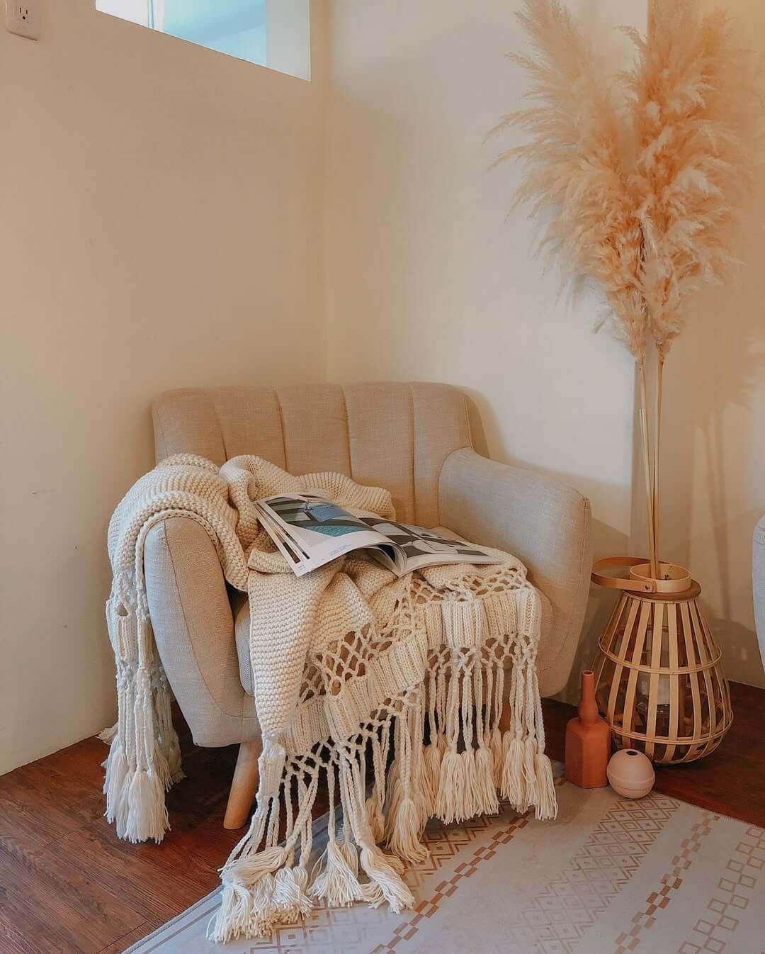 A soft throw you actually want to touch. Linen cushions that wrinkle slightly. A woven basket that adds depth without shouting for attention.