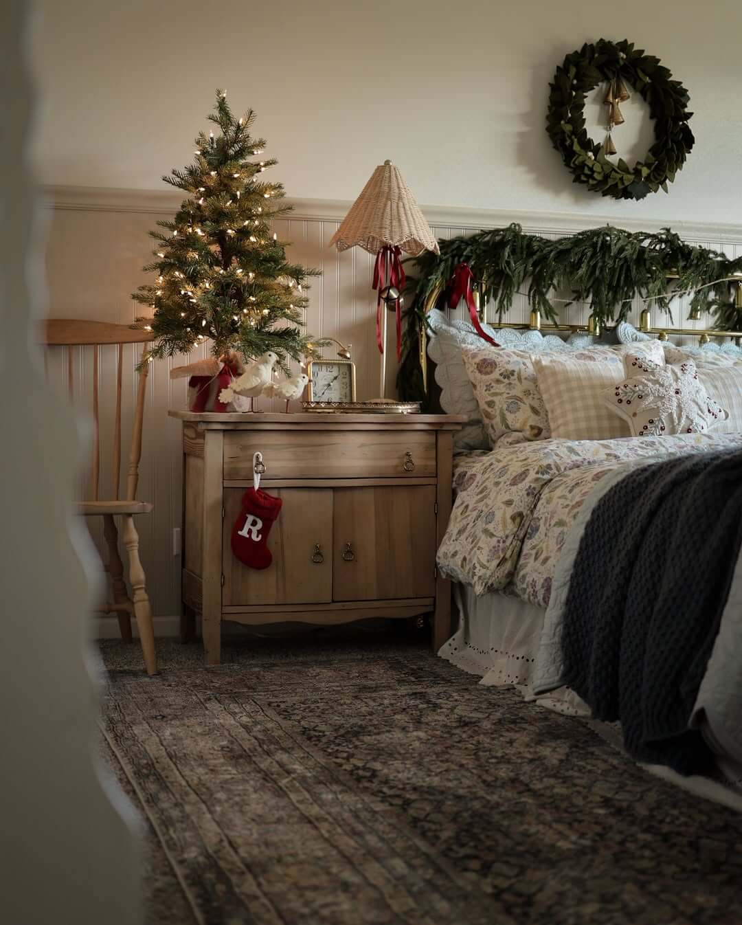 Since then, every year I’ve given my bedroom a softer kind of Christmas makeover—one that feels like warmth instead of clutter.