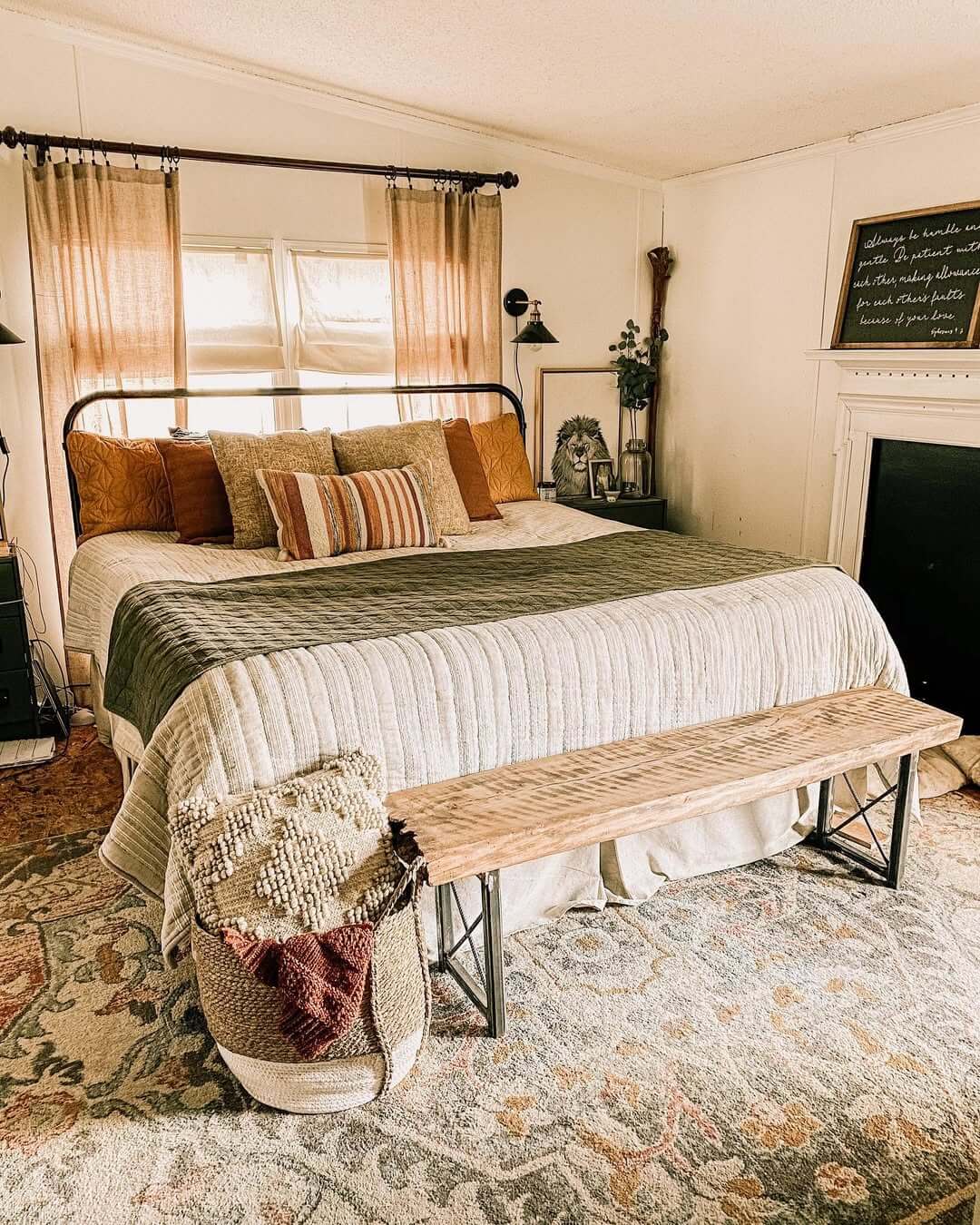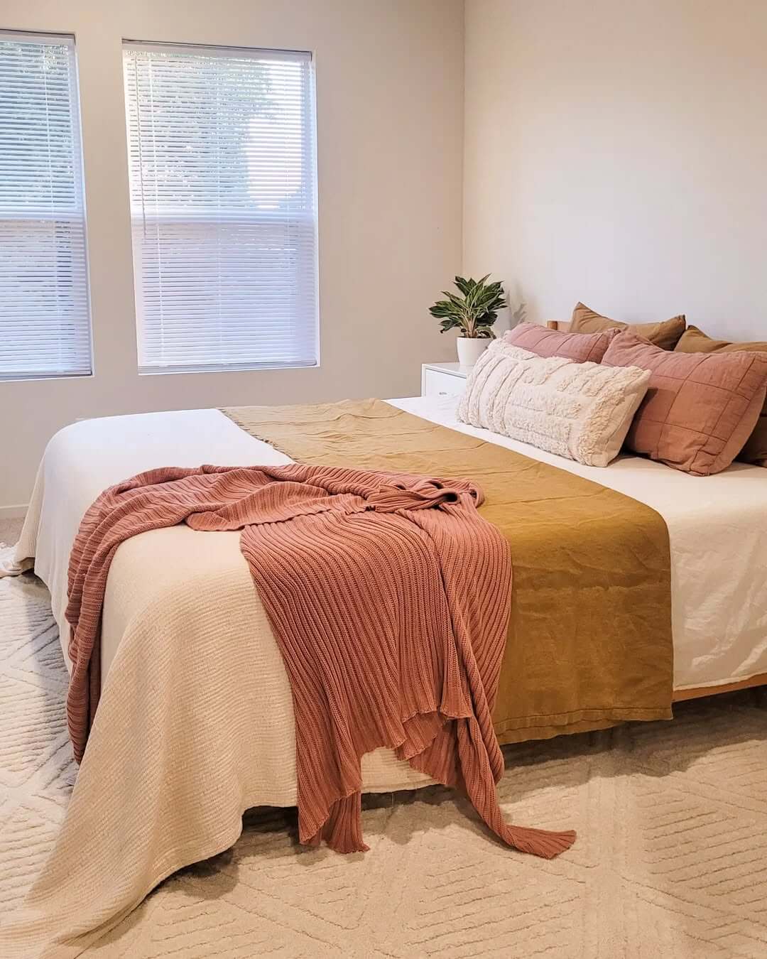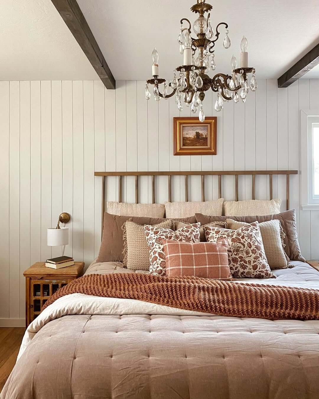 The right mix creates depth, coziness, and balance, making your bedroom feel like a fall retreat. Here’s how I like to do it:
