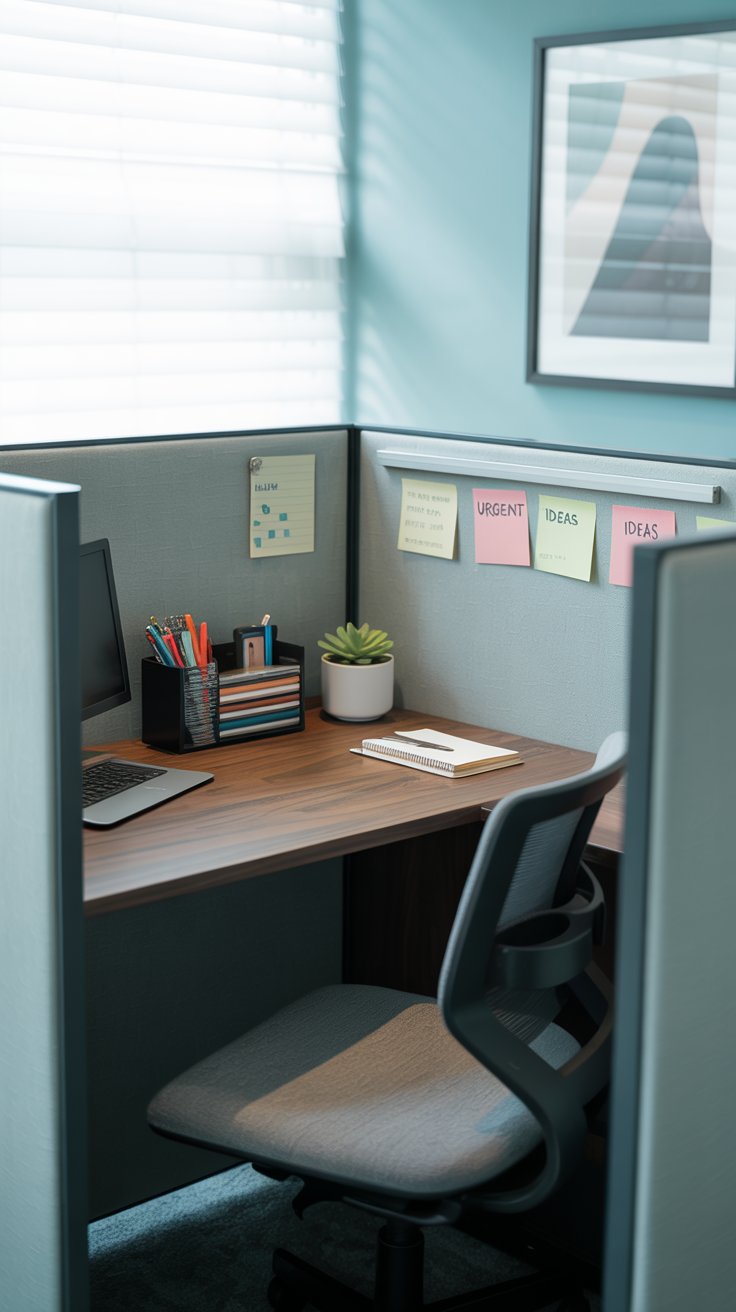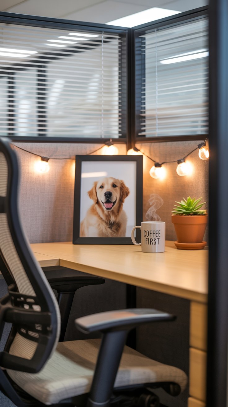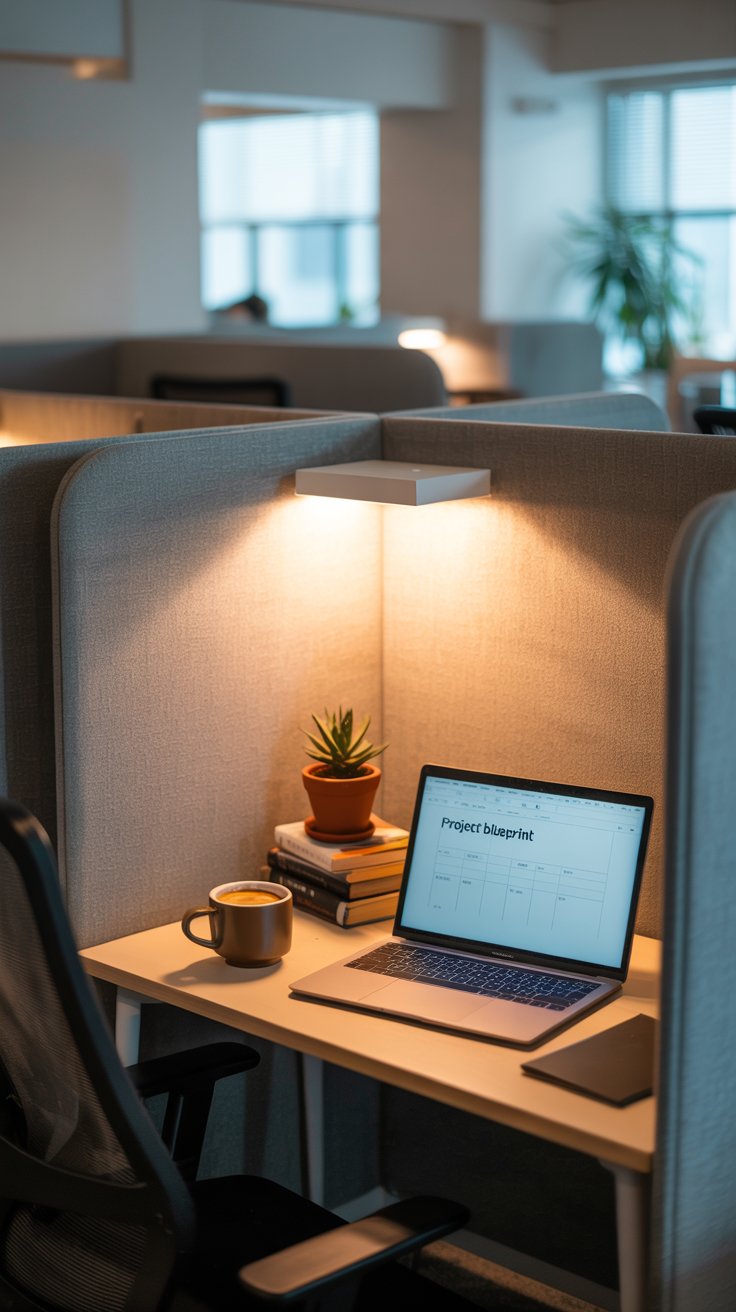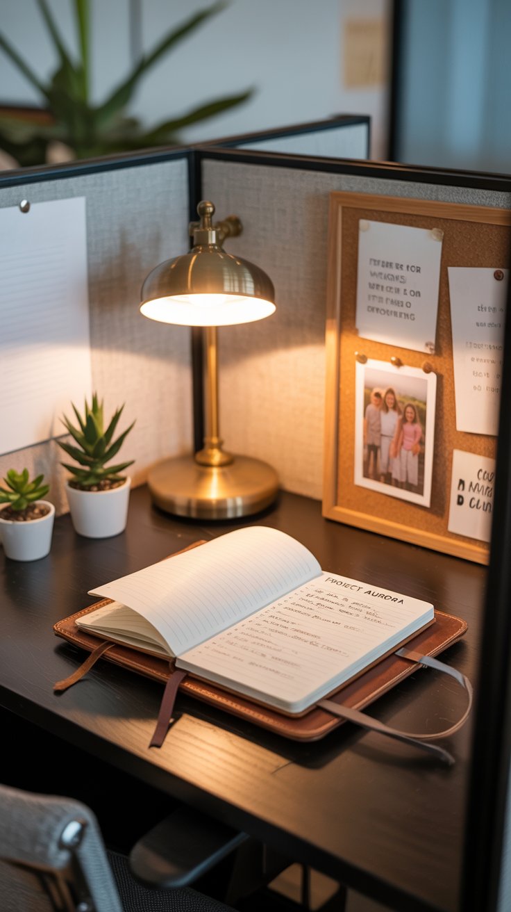 Adding a small desk lamp or clip-on light with a warm LED bulb (2700K) instantly softens the mood and makes your cubicle feel less like a corporate box and more like a cozy corner.