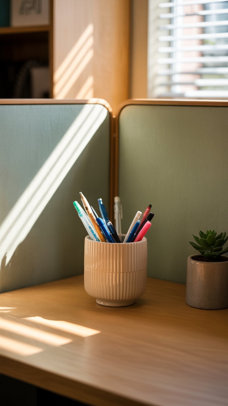 - Update a small textile accent—such as a pillow cover or pen holder—to reflect seasonal colors.