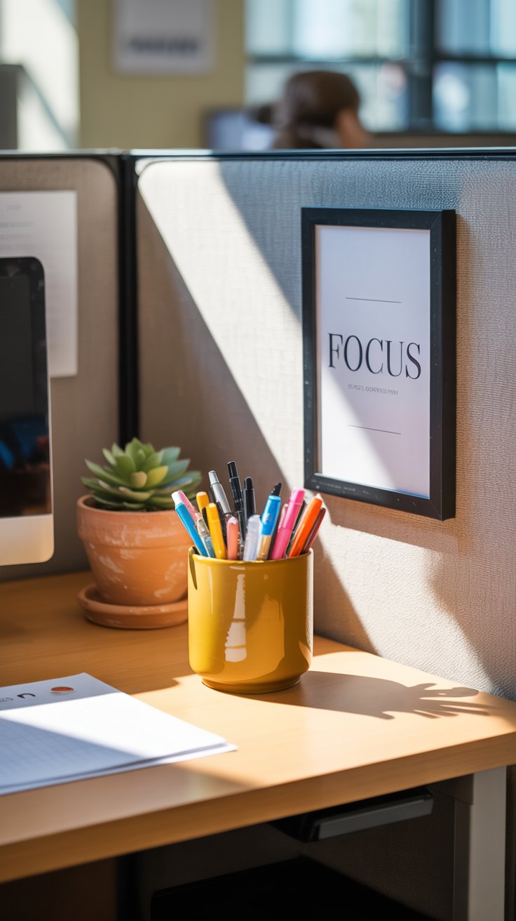 💡Action Step: Bring in one small lumbar cushion or fabric desk organizer this week. You’ll immediately notice your cubicle feels more personal and less like a “box.”