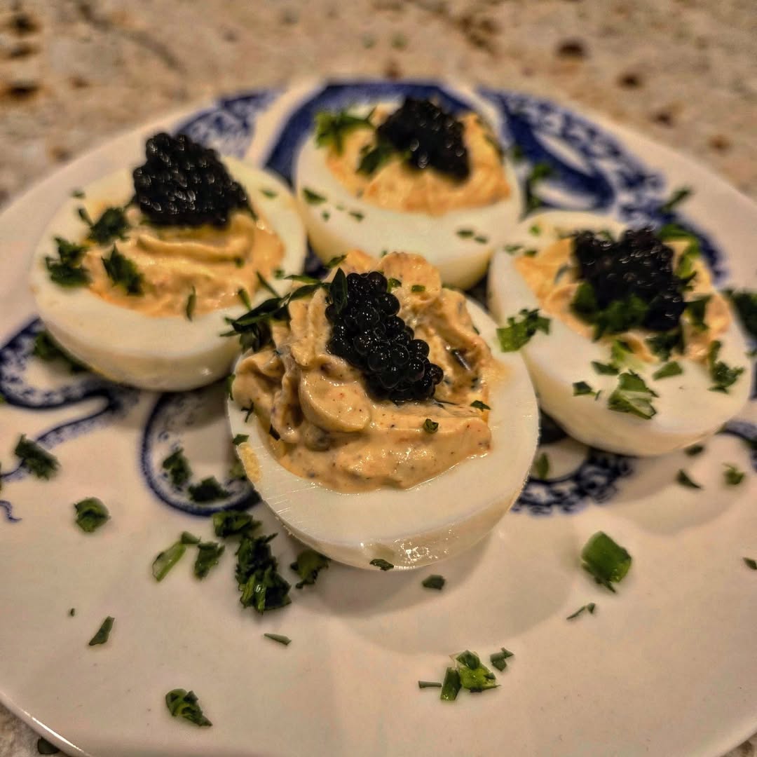 Start with Halloween snacks like deviled eggs — just add black olive slices to make them look like spiders.