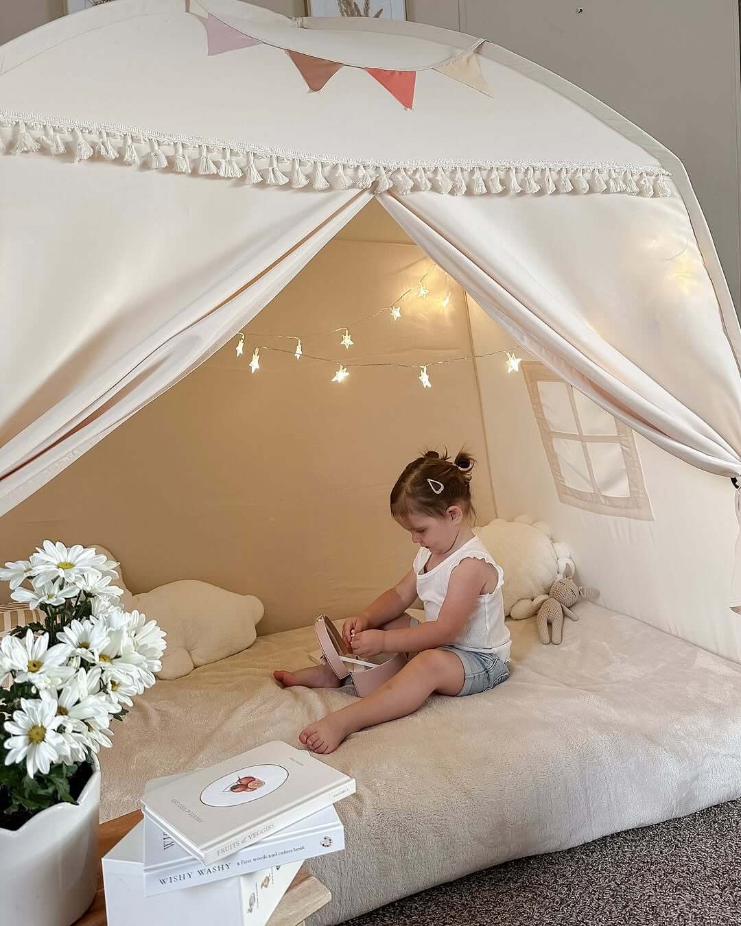 💡 Quick action step: Dedicate one corner of the room to play; add a teepee, art supplies, or soft mats for building forts.