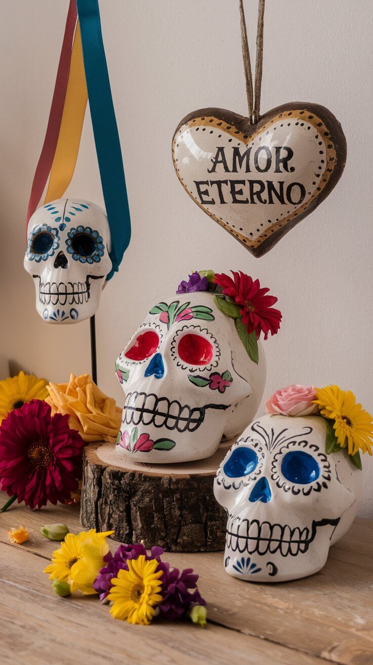 Day of the Dead décor isn’t about spookiness—it’s a joyful celebration of life and memory. Papel picado banners, sugar skulls, and La Catrina figures bring whimsy and heart to any room.