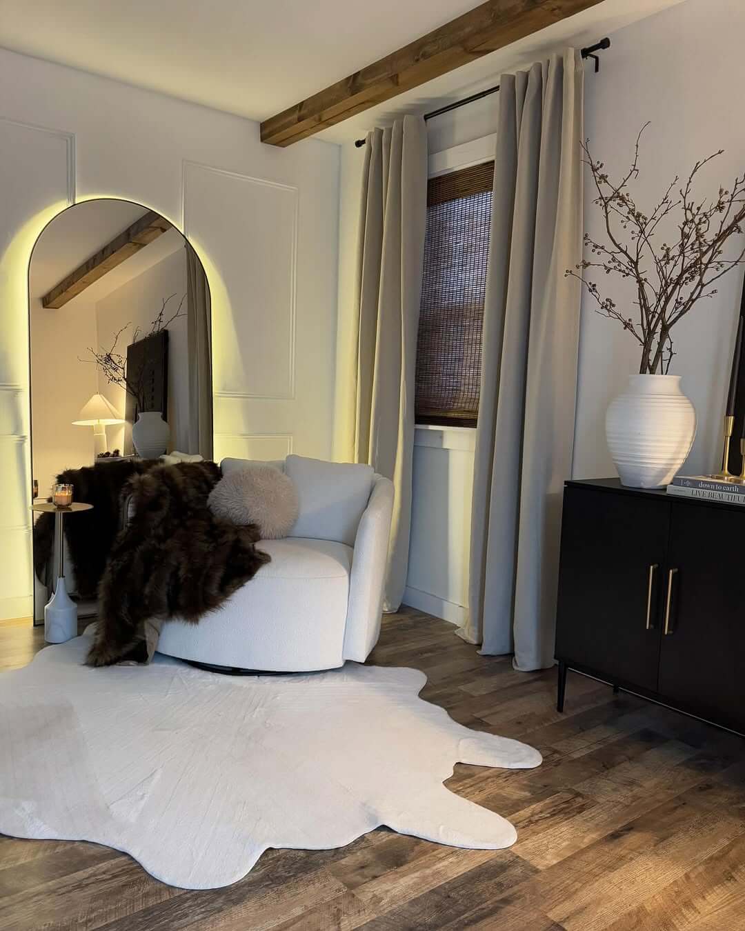 Once your space feels clear, the next step is giving it warmth without overfilling it. And that begins with texture.