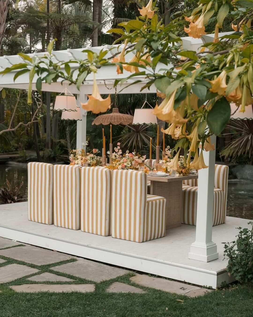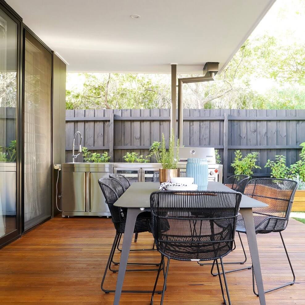 Even a few well-placed plants can make outdoor dining areas feel calmer and more intentional.