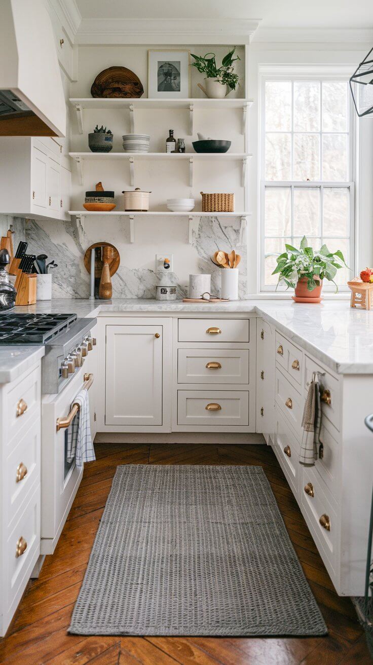 Open shelving was a game-changer in my kitchen. Swapping a pair of upper cabinets for a couple of floating shelves cost me about $80 total, and suddenly my kitchen felt twice the size.