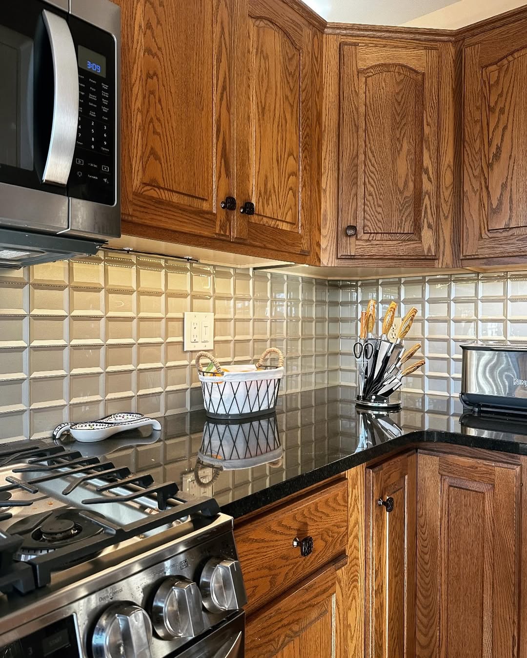 Why this works: According to Bob Vila, peel-and-stick backsplashes start at $4 per sq. ft. and install in no time—even renters can undo them later.