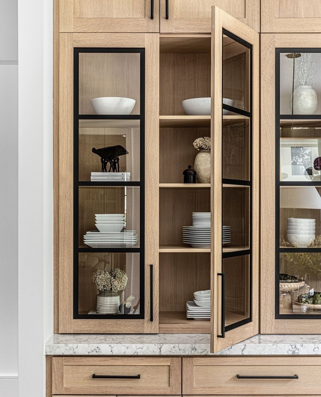 Pro tip: Use frosted or seeded glass to disguise a messy shelf and still enjoy that open, inviting feel.