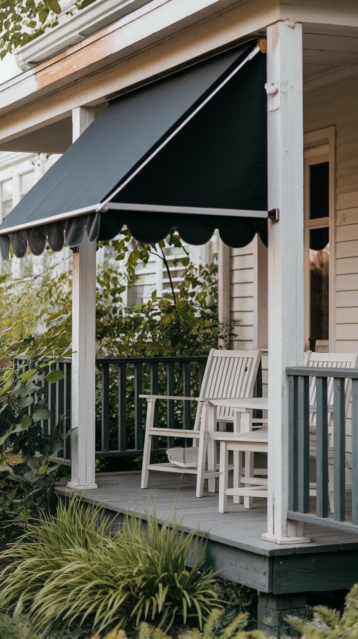 Styling twist: Repeat your chosen finish elsewhere for a pulled-together look. Black awning? Match your house numbers, railings, or mailbox. Copper awning? Complement it with warm-toned lanterns or even a rustic wood bench on the porch.