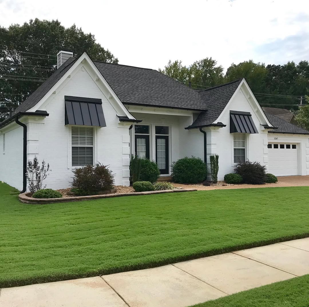 Think of the finish as part of your home’s jewelry. A glossy black awning framed above a red front door makes a striking, dramatic statement. Meanwhile, brushed bronze tones echo autumn leaves and soften the look of stone or beige exteriors.